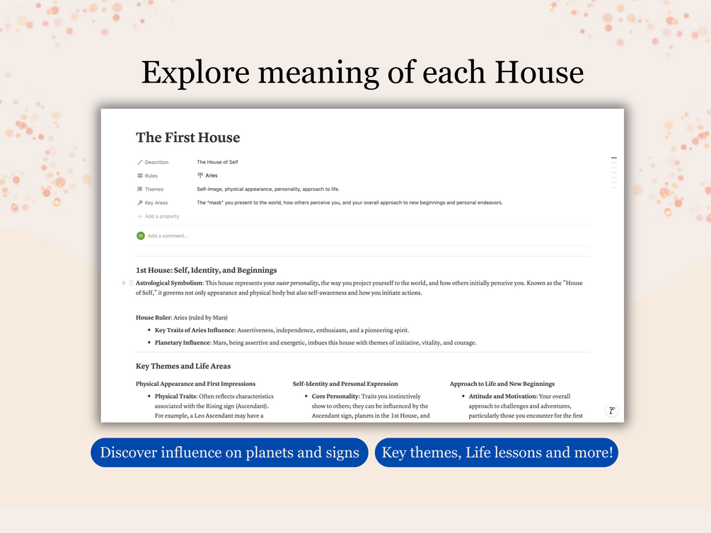 - Houses & Their Meanings: Explore the significance of each house in your chart and how it shapes different areas of your life.